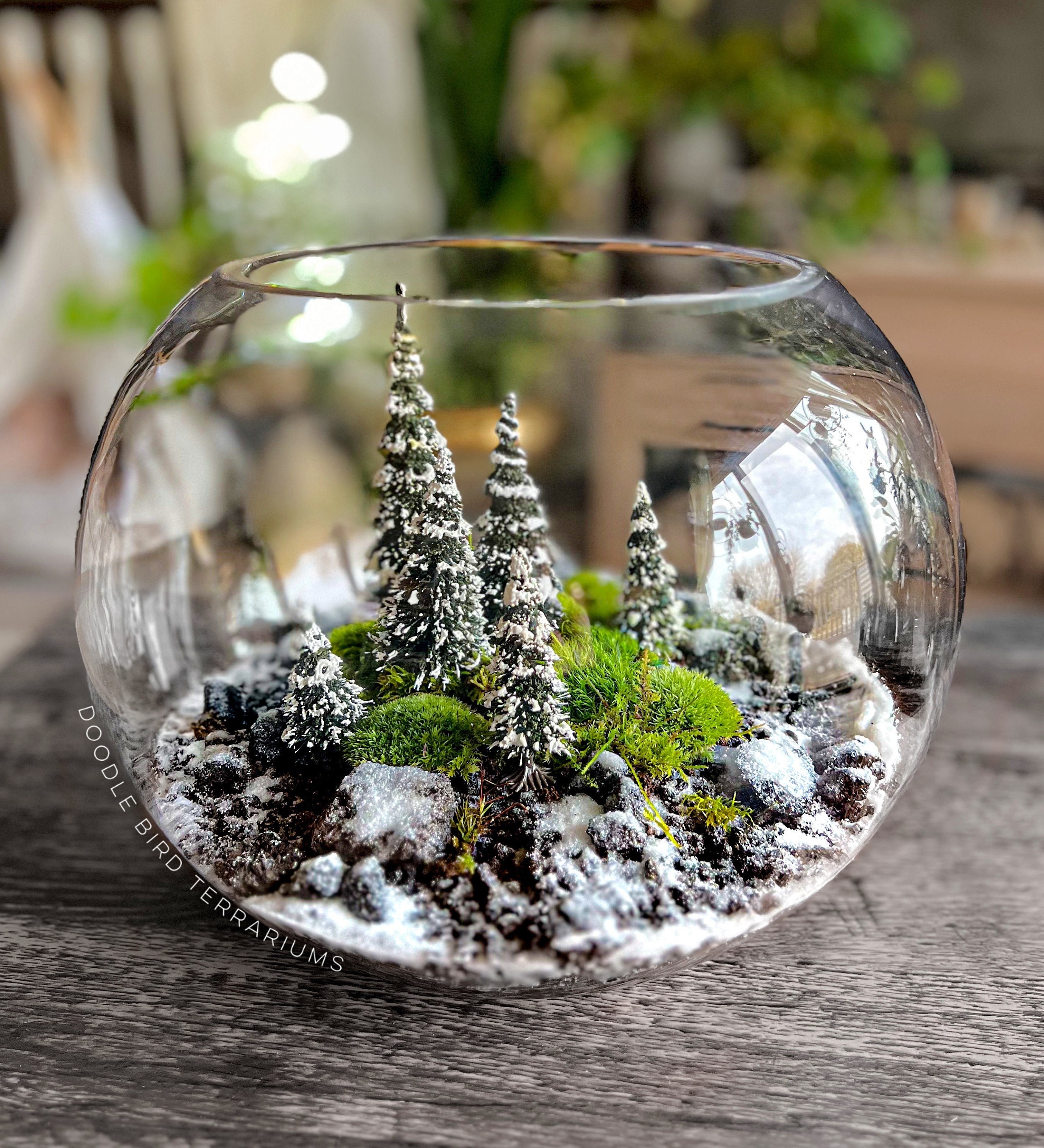 Terrariums are packaged with great care. Packing material is used both inside and outside the jar so that the contents are not jumbled around during shipping. Any terrarium containing live plants should be unpacked immediately after arrival. Plants cannot survive long periods of time inside the box or with packing material covering them. If you need to keep the terrarium in the box then place it in the refrigerator until needed. This will keep the plant fresh (simulating winter conditions) and green. Remember to remove the packing material prior to storage.