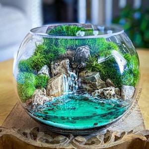 Terrariums are packaged with great care. Packing material is used both inside and outside the jar so that the contents are not jumbled around during shipping. Any terrarium containing live plants should be unpacked immediately after arrival. Plants cannot survive long periods of time inside the box or with packing material covering them. If you need to keep the terrarium in the box then place it in the refrigerator until needed. This will keep the plant fresh (simulating winter conditions) and green. Remember to remove the packing material prior to storage.