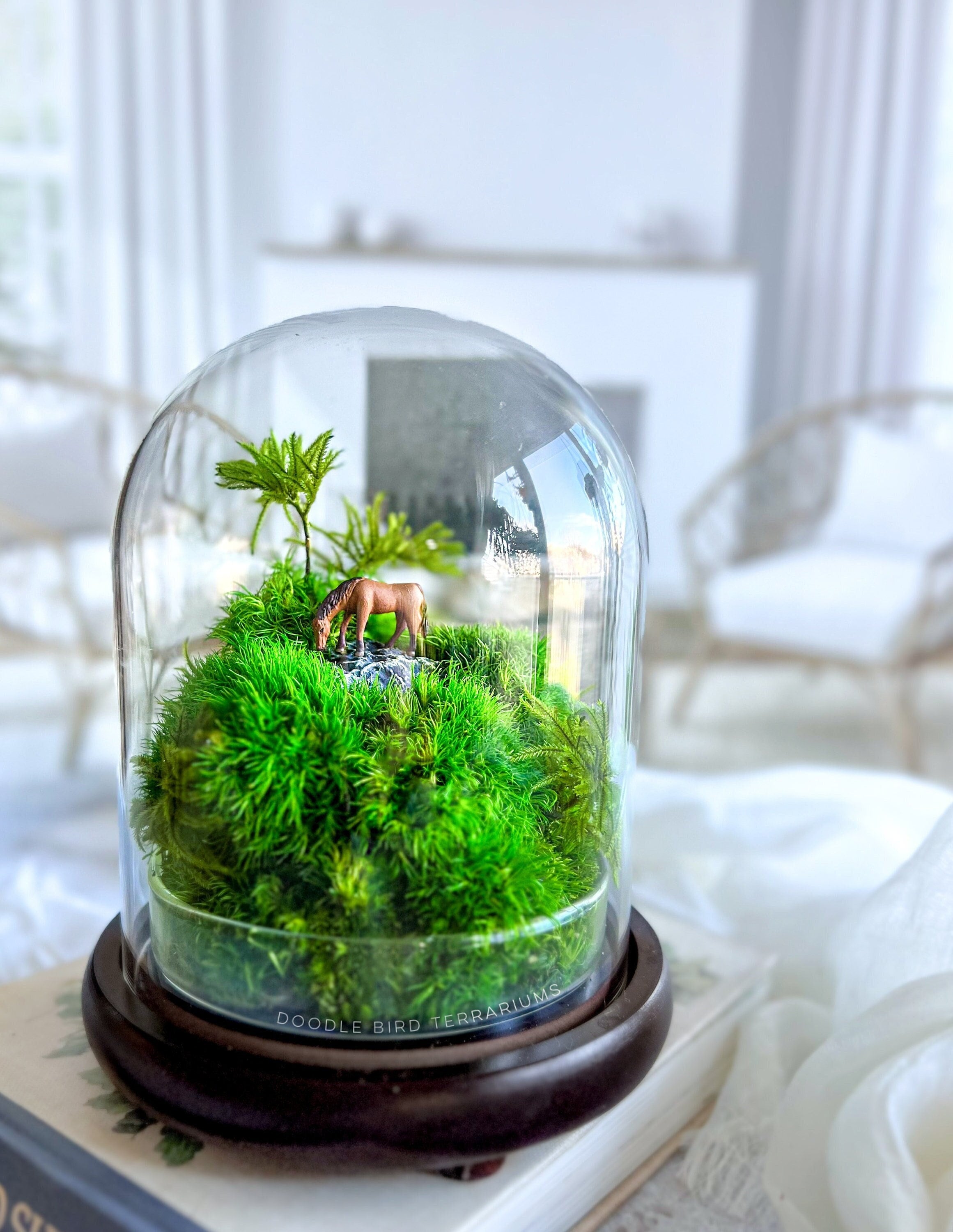 Terrariums are packaged with great care. Packing material is used both inside and outside the jar so that the contents are not jumbled around during shipping. Any terrarium containing live plants should be unpacked immediately after arrival. Plants cannot survive long periods of time inside the box or with packing material covering them. If you need to keep the terrarium in the box then place it in the refrigerator until needed. This will keep the plant fresh (simulating winter conditions) and green. Remember to remove the packing material prior to storage.
