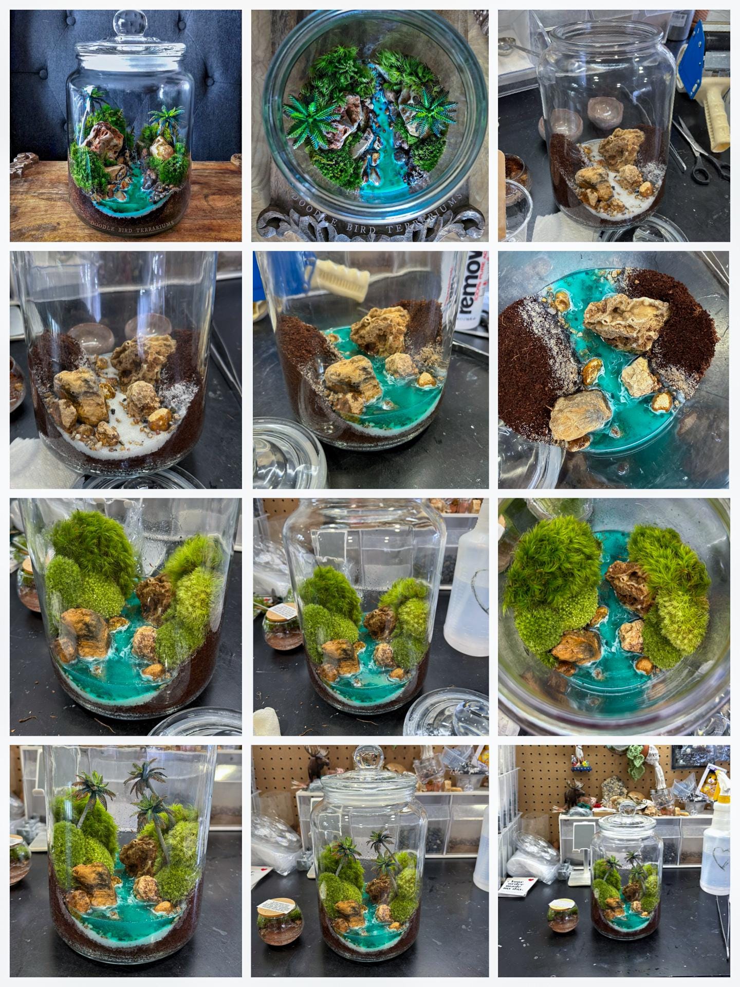 Terrariums are packaged with great care. Packing material is used both inside and outside the jar so that the contents are not jumbled around during shipping. Any terrarium containing live plants should be unpacked immediately after arrival. Plants cannot survive long periods of time inside the box or with packing material covering them. If you need to keep the terrarium in the box then place it in the refrigerator until needed. This will keep the plant fresh (simulating winter conditions) and green. Remember to remove the packing material prior to storage.
