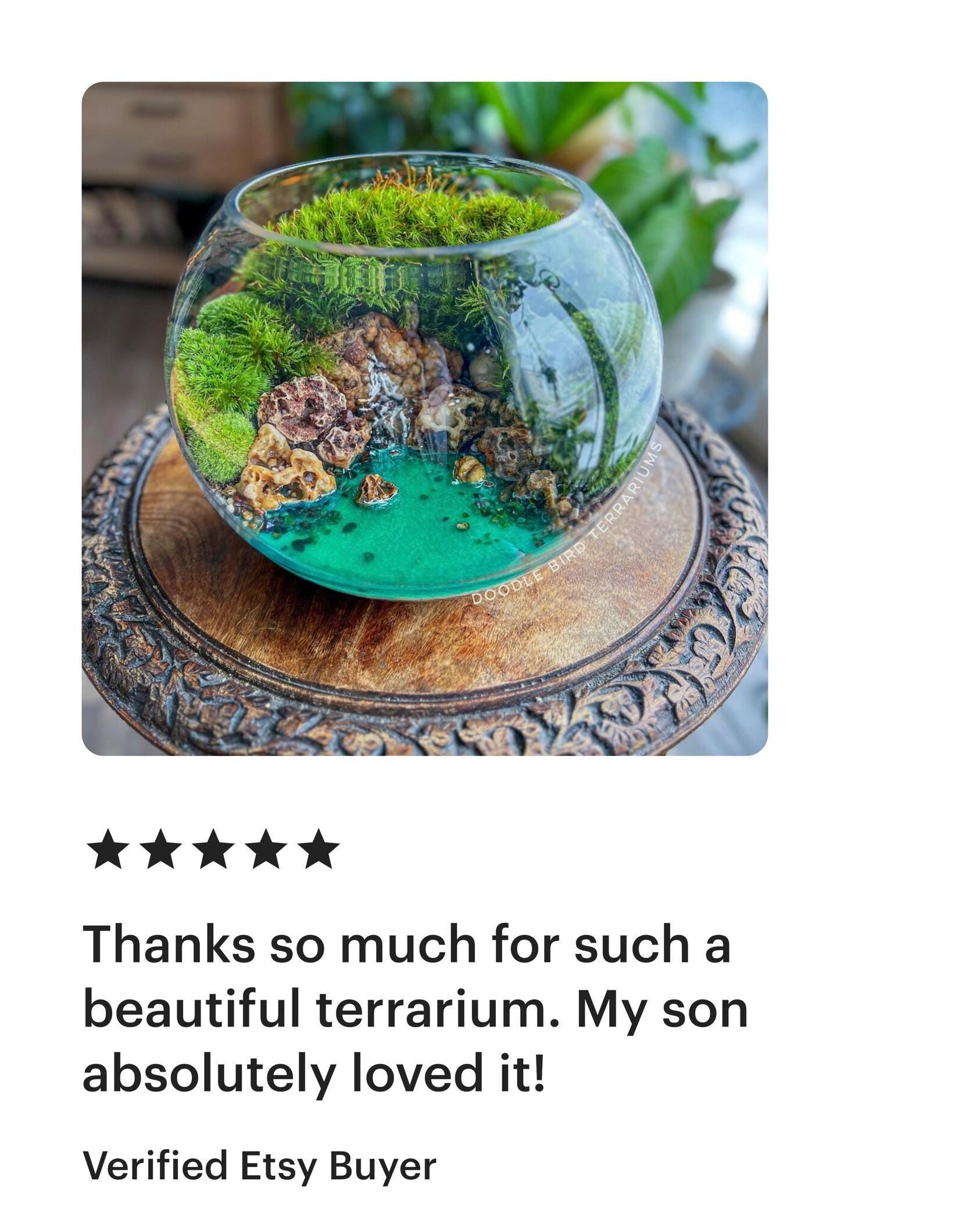 Terrarium orders are processed and shipped in the order they are received. Each piece is packaged using soft material that holds everything in place so that nothing is disturbed or moved around in transit. Please take a moment to browse my policies page for additional ordering information.
