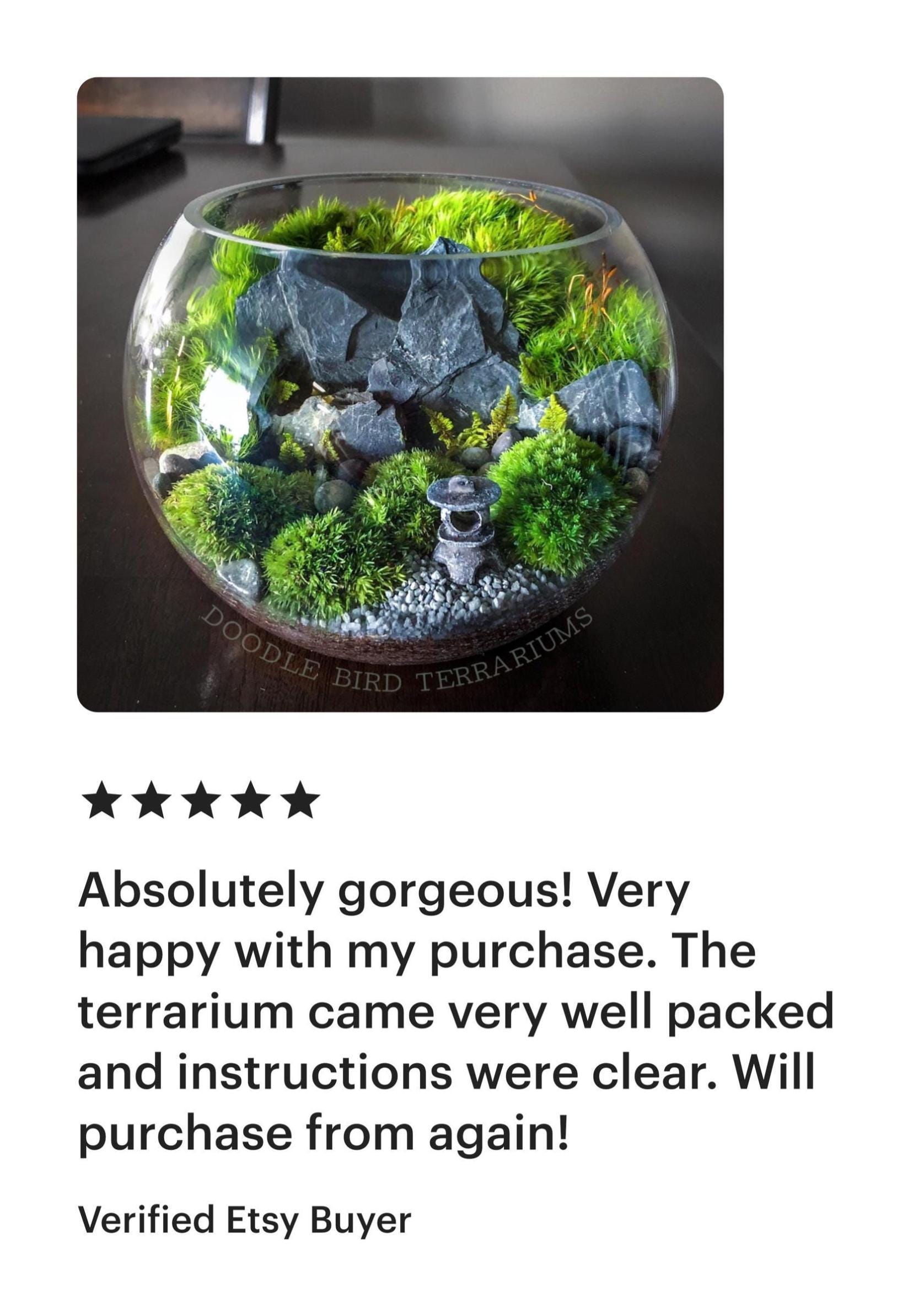 Terrariums are packaged with great care keeping safety in mind. Because of that reason, gift wrapping is not an option. However, a personalized gift card is available upon request and is free of charge.
