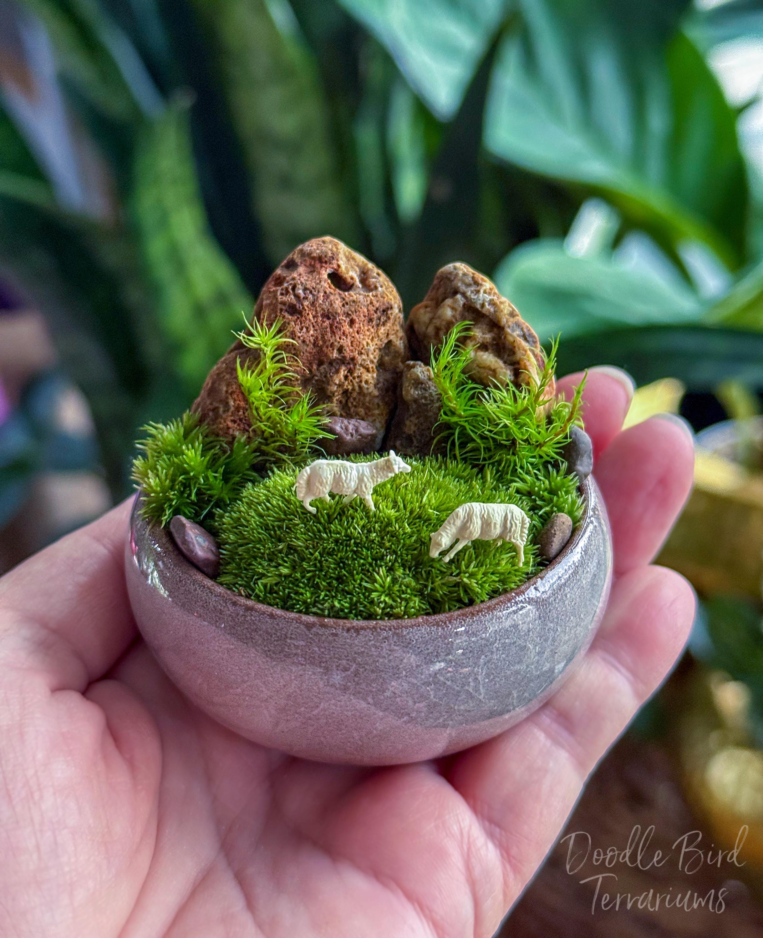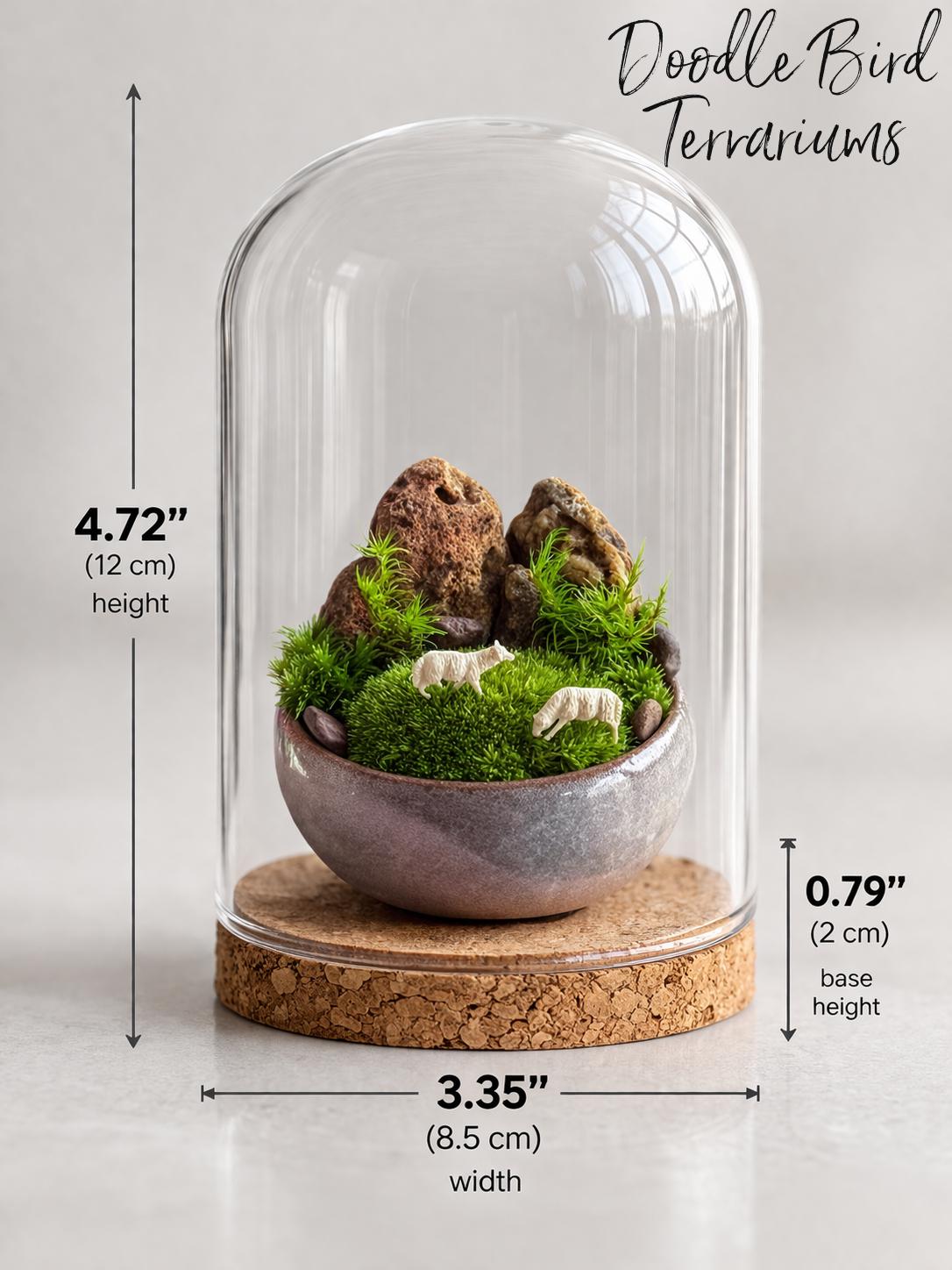 Terrariums are packaged with great care. Packing material is used both inside and outside the jar so that the contents are not jumbled around during shipping. Any terrarium containing live plants should be unpacked immediately after arrival. Plants cannot survive long periods of time inside the box or with packing material covering them. If you need to keep the terrarium in the box then place it in the refrigerator until needed. This will keep the plant fresh (simulating winter conditions) and green. Remember to remove the packing material prior to storage.