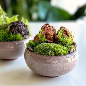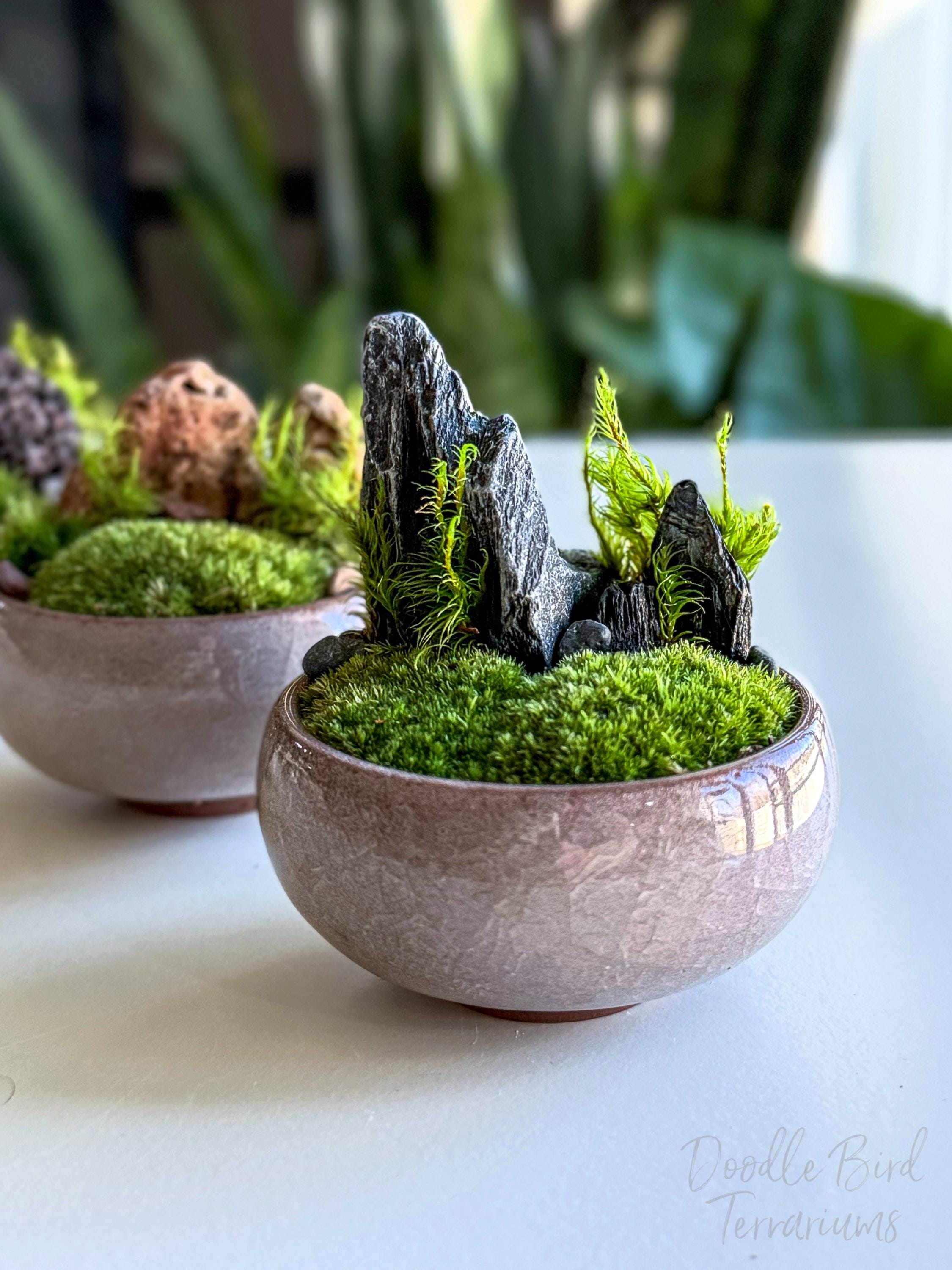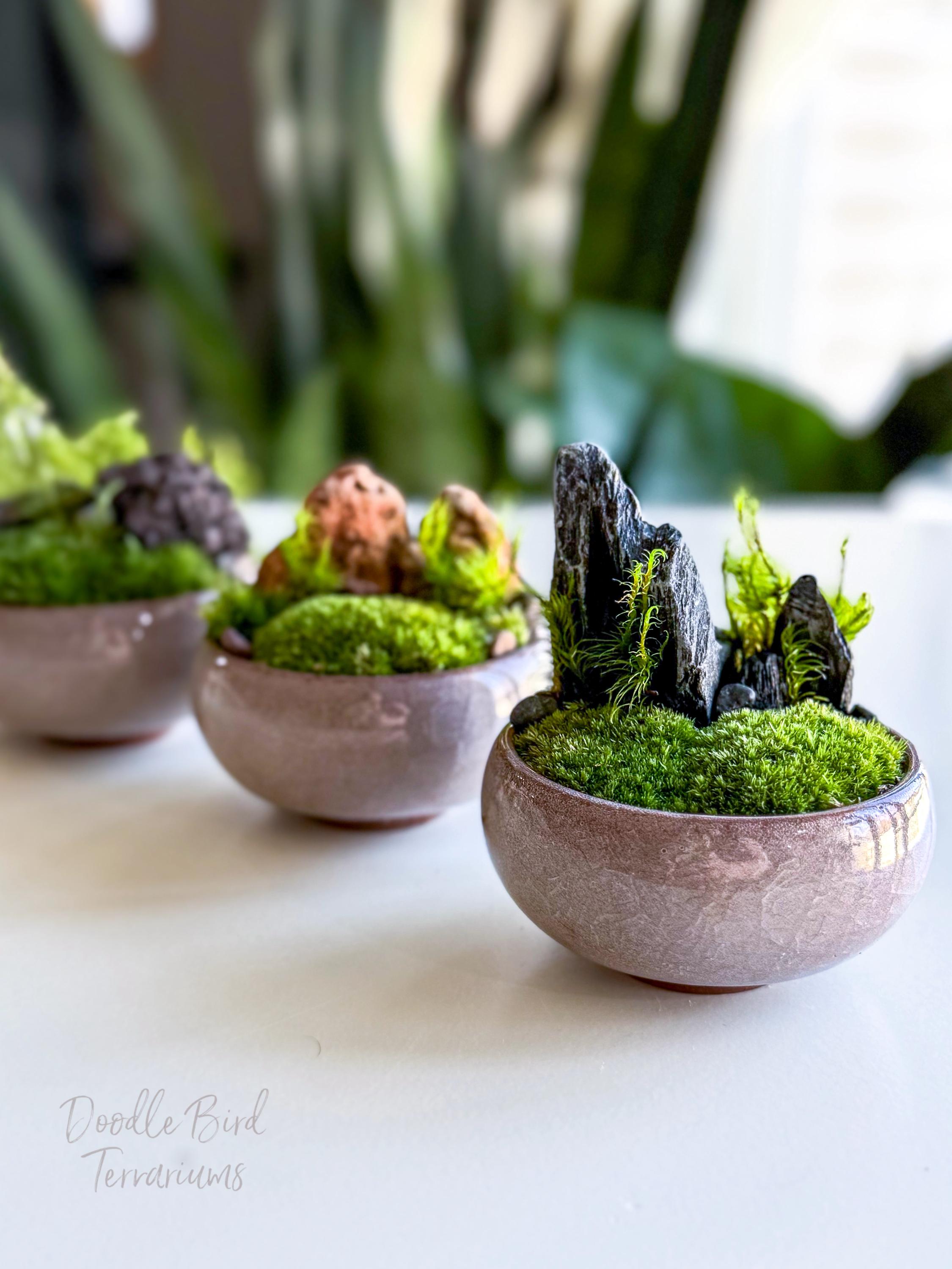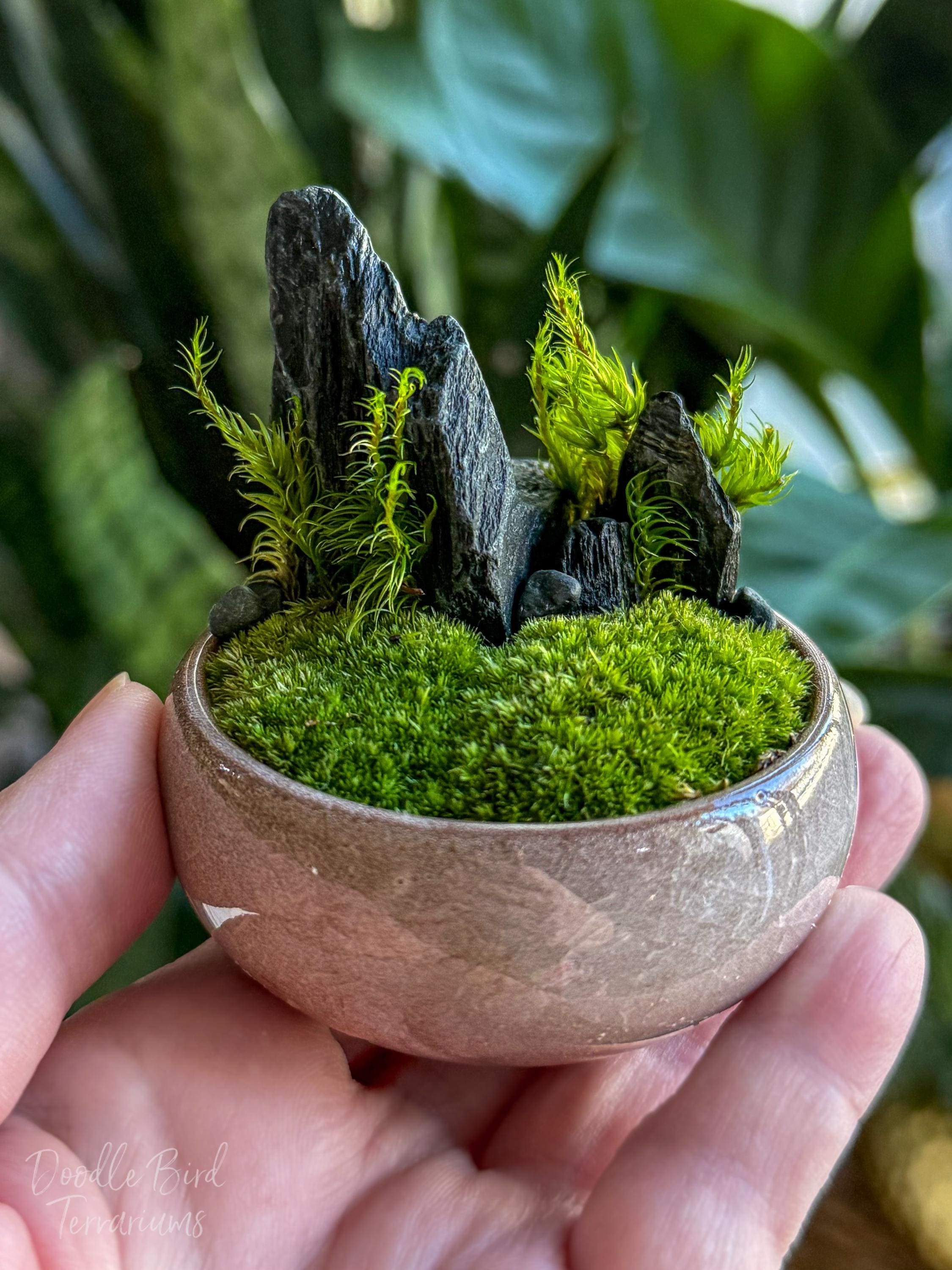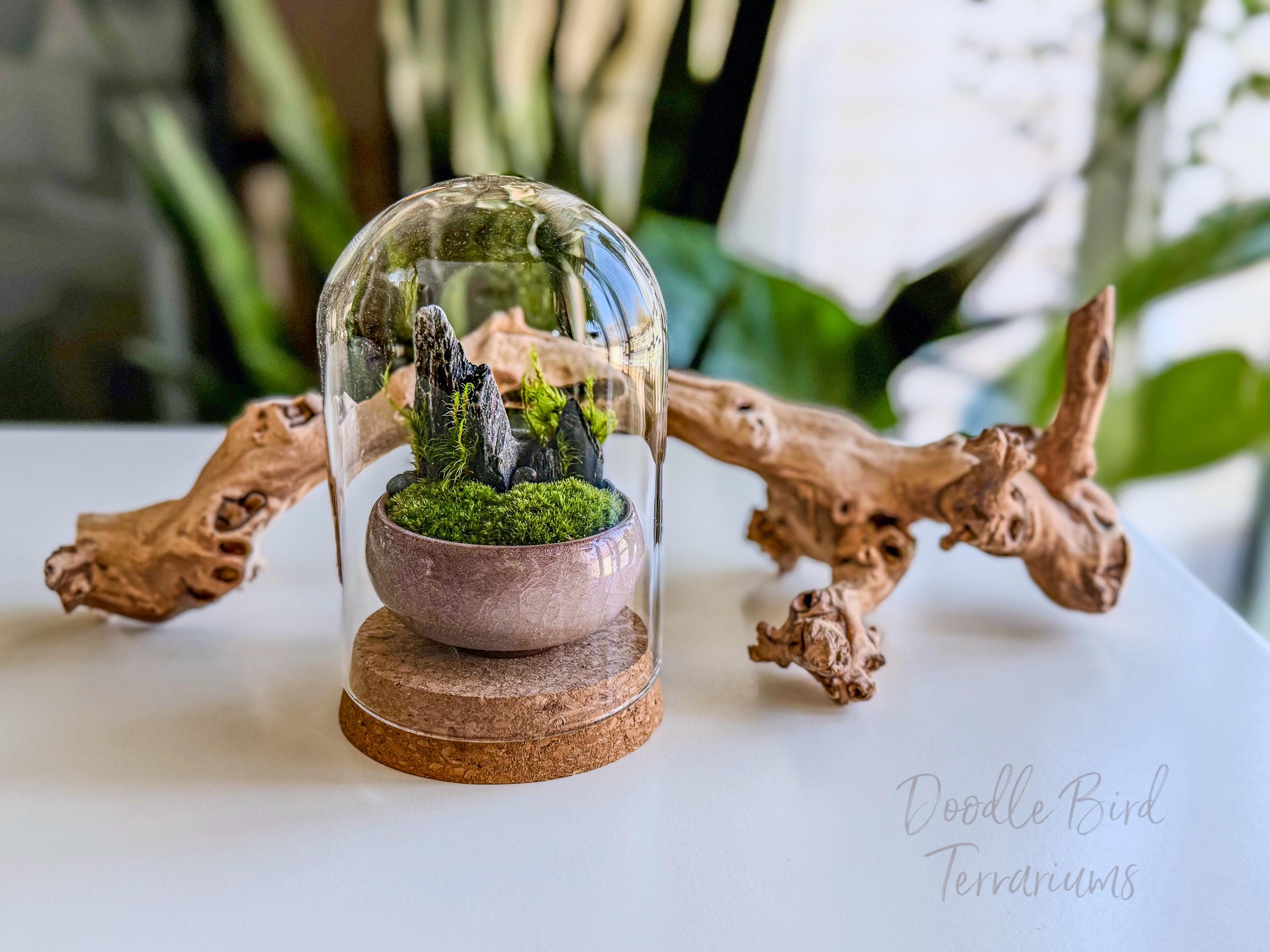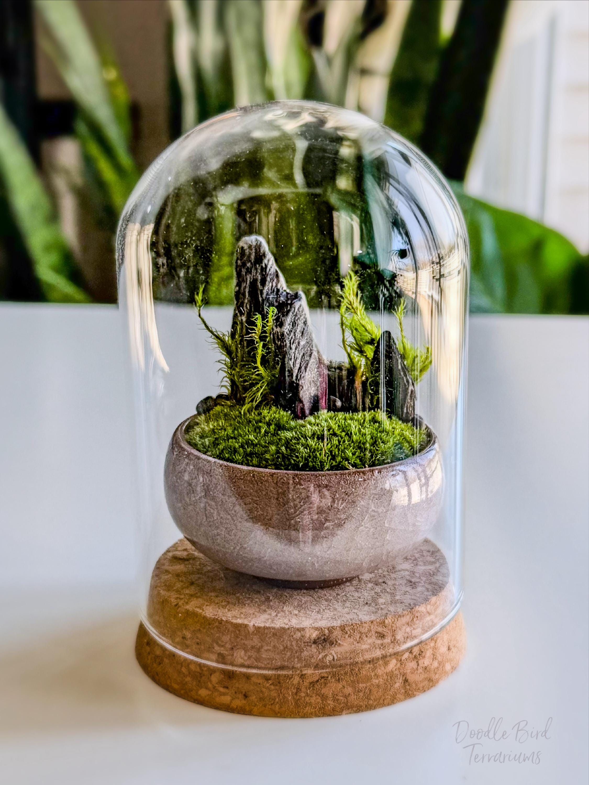 Terrariums are packaged with great care. Packing material is used both inside and outside the jar so that the contents are not jumbled around during shipping. Any terrarium containing live plants should be unpacked immediately after arrival. Plants cannot survive long periods of time inside the box or with packing material covering them. If you need to keep the terrarium in the box then place it in the refrigerator until needed. This will keep the plant fresh (simulating winter conditions) and green. Remember to remove the packing material prior to storage.