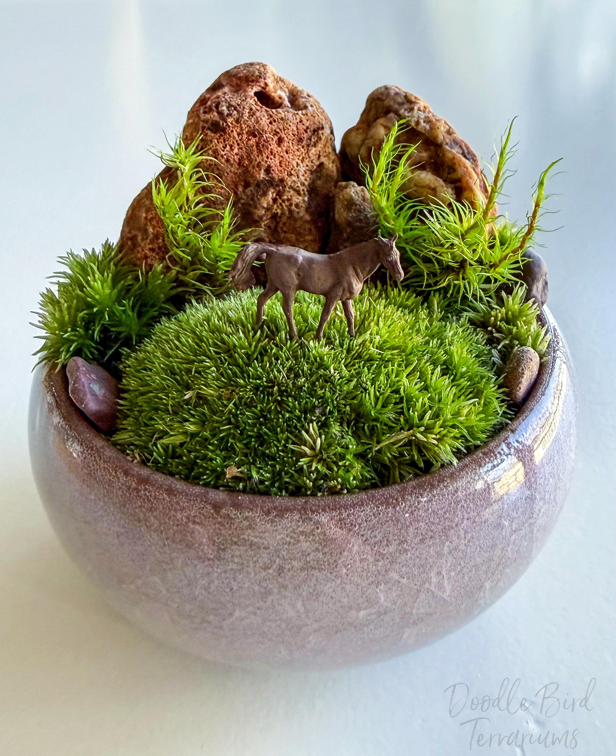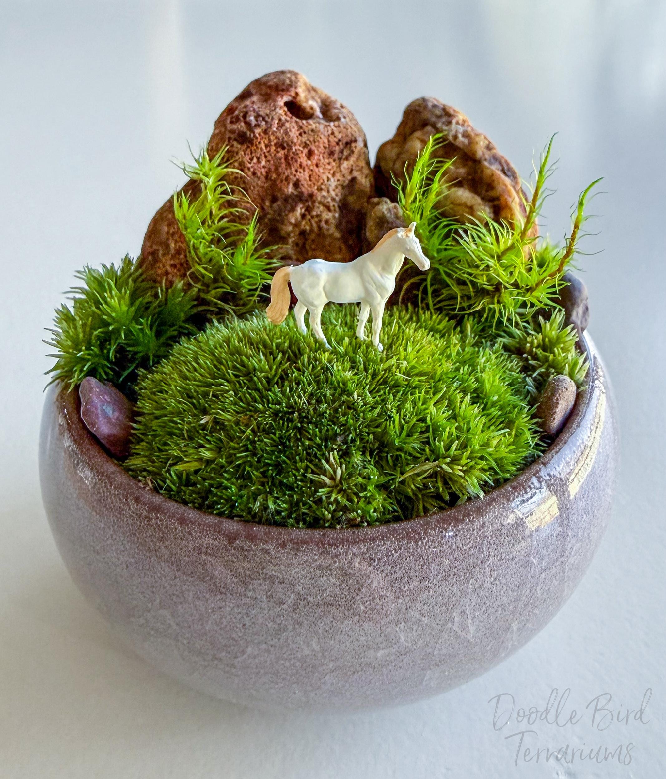 Terrariums are packaged with great care. Packing material is used both inside and outside the jar so that the contents are not jumbled around during shipping. Any terrarium containing live plants should be unpacked immediately after arrival. Plants cannot survive long periods of time inside the box or with packing material covering them. If you need to keep the terrarium in the box then place it in the refrigerator until needed. This will keep the plant fresh (simulating winter conditions) and green. Remember to remove the packing material prior to storage.