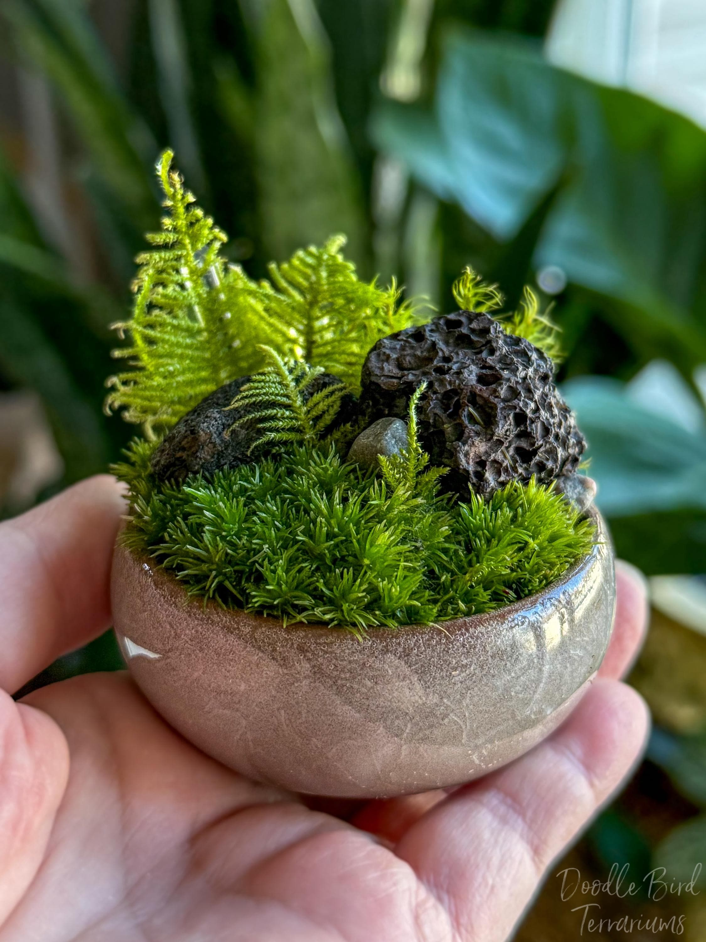 Mini Moss & Stone Dish Garden – Tiny Terrarium with Natural Lava Rock and Fern Moss