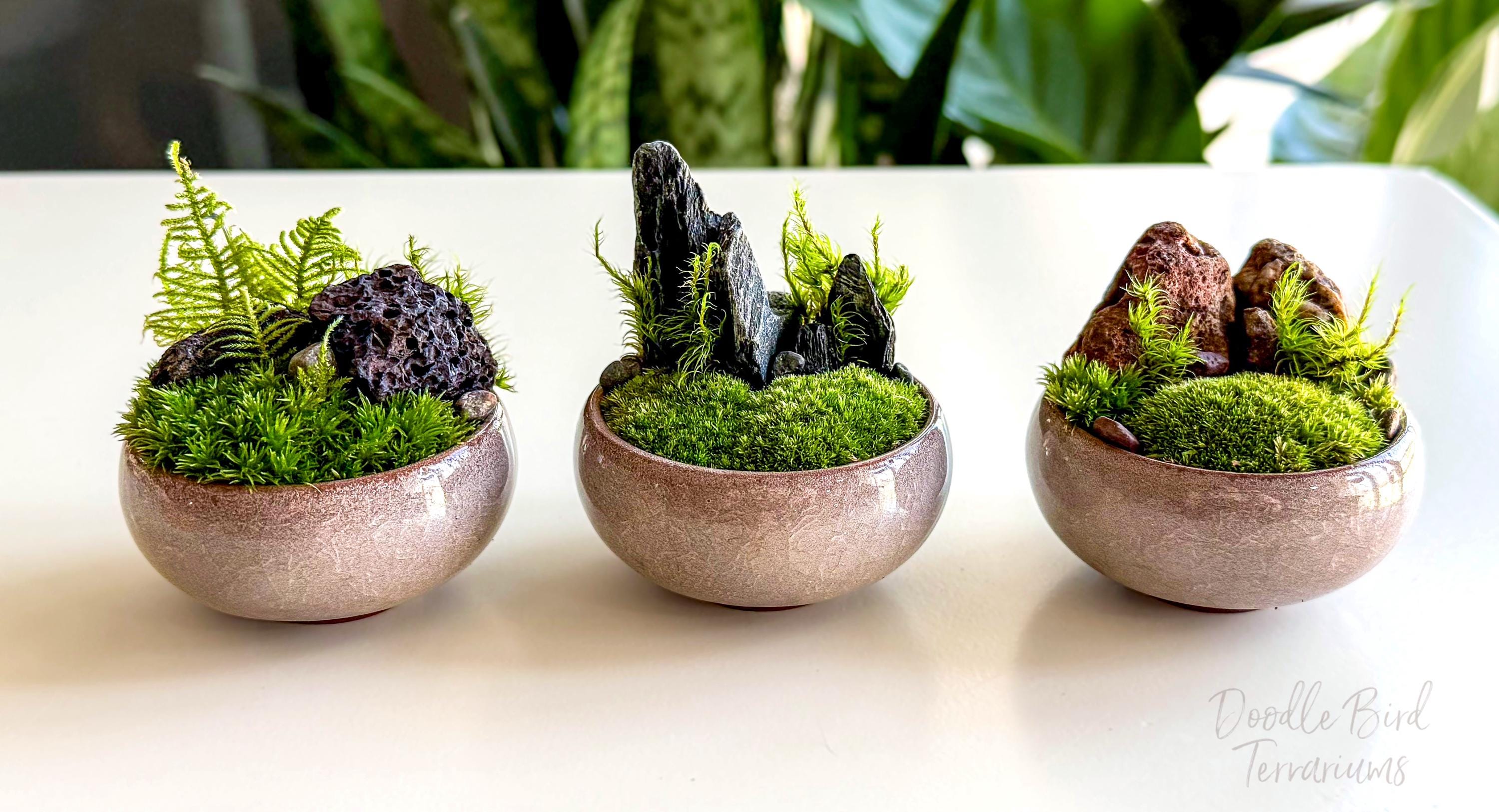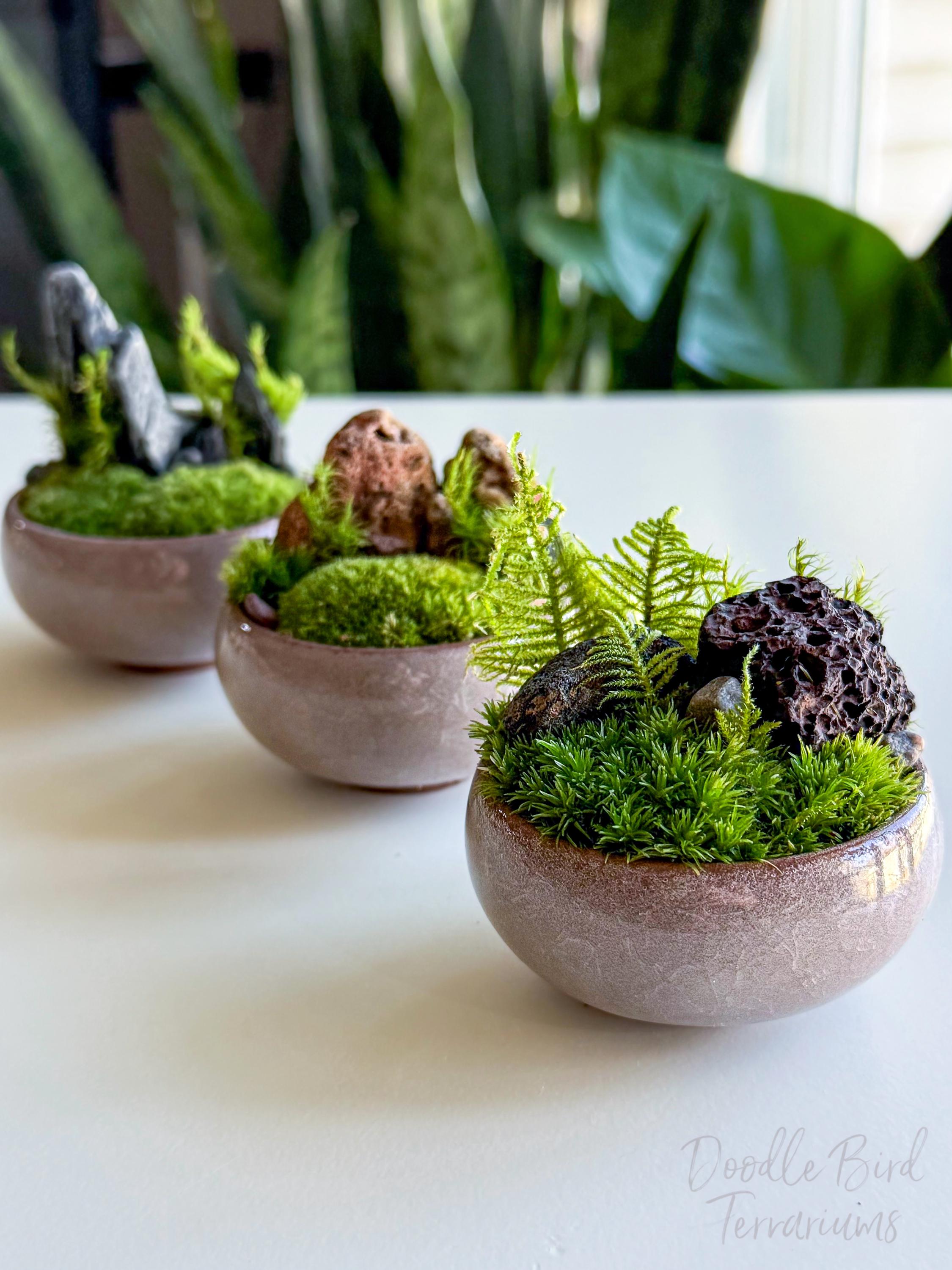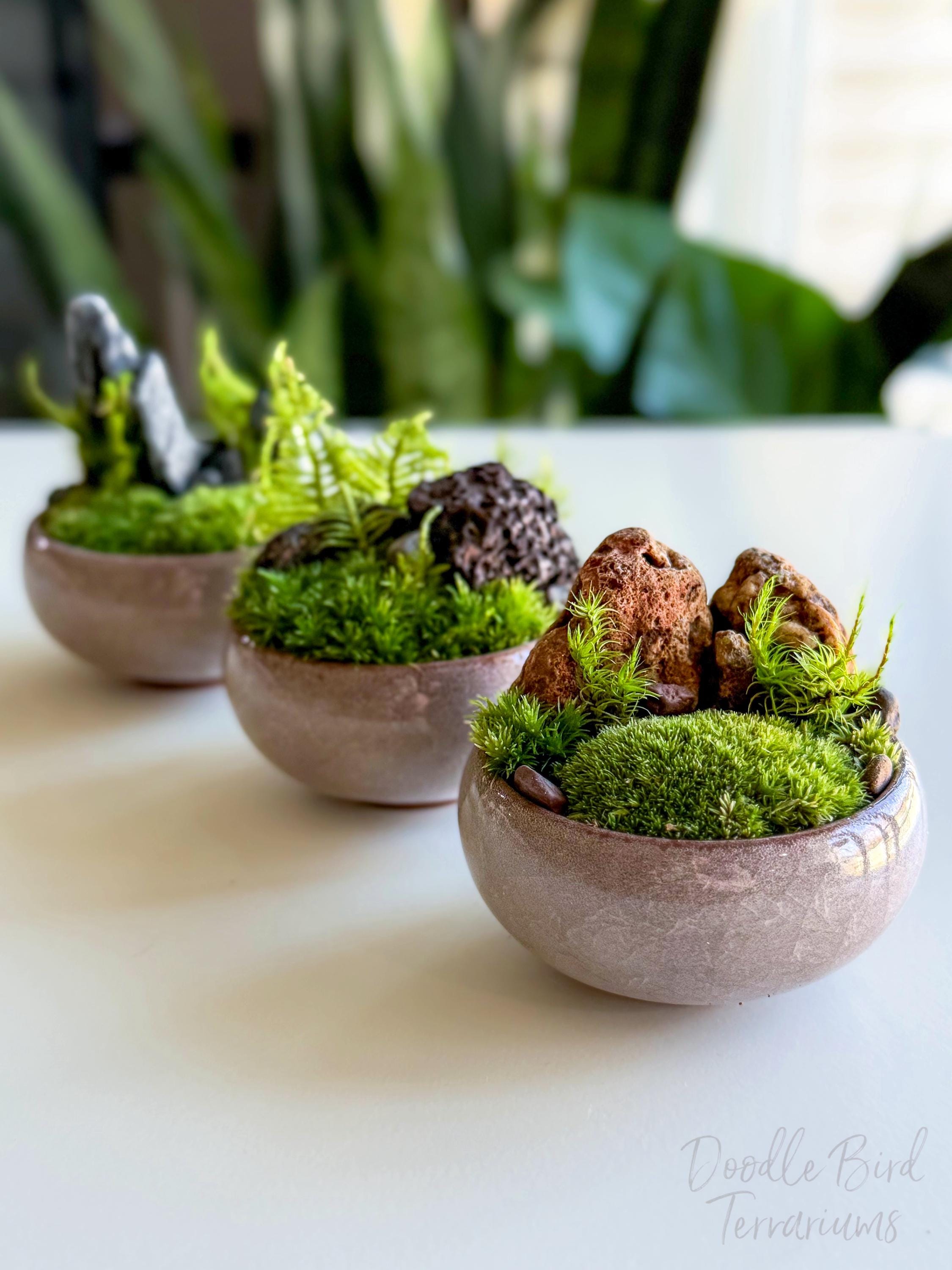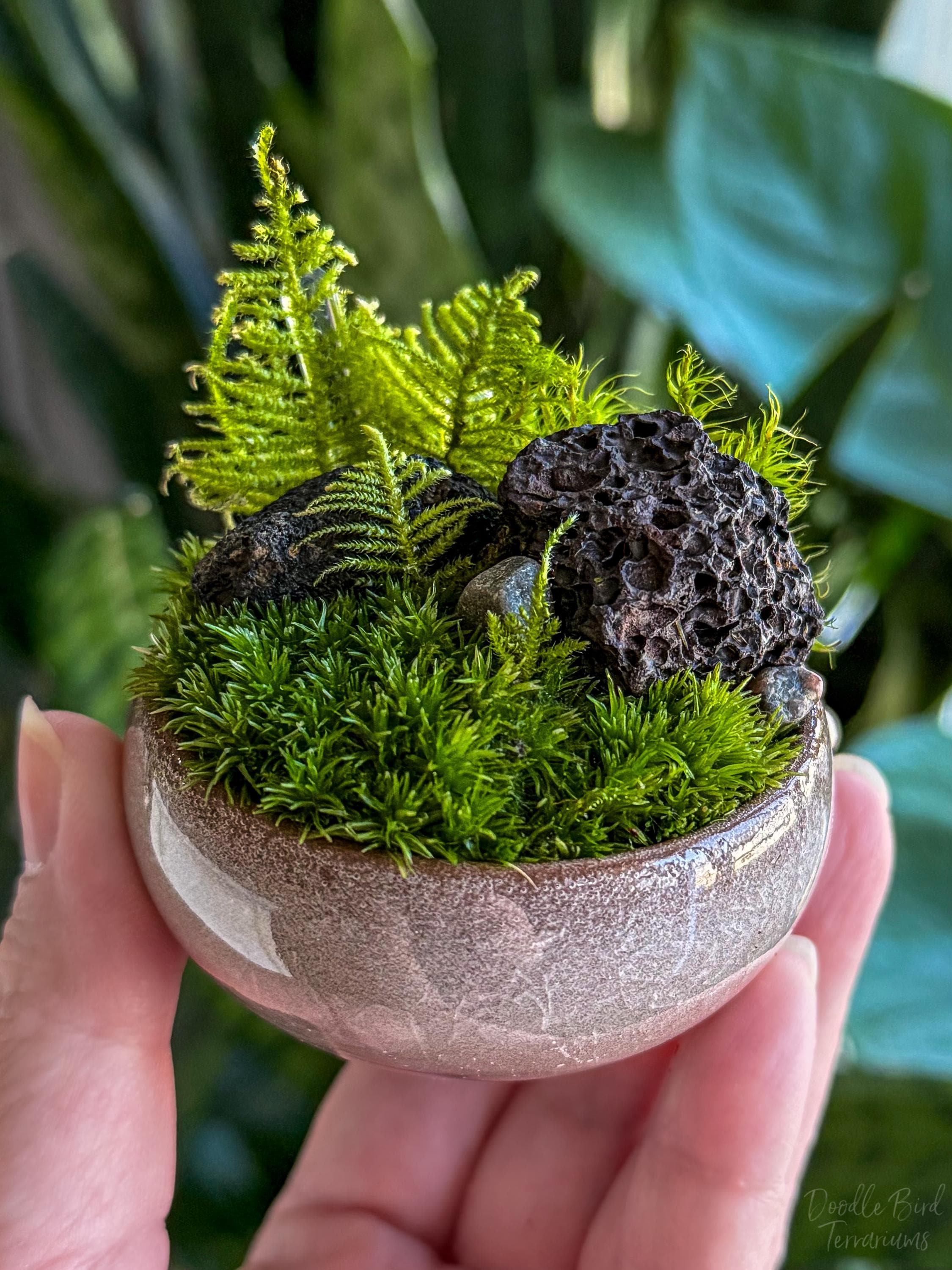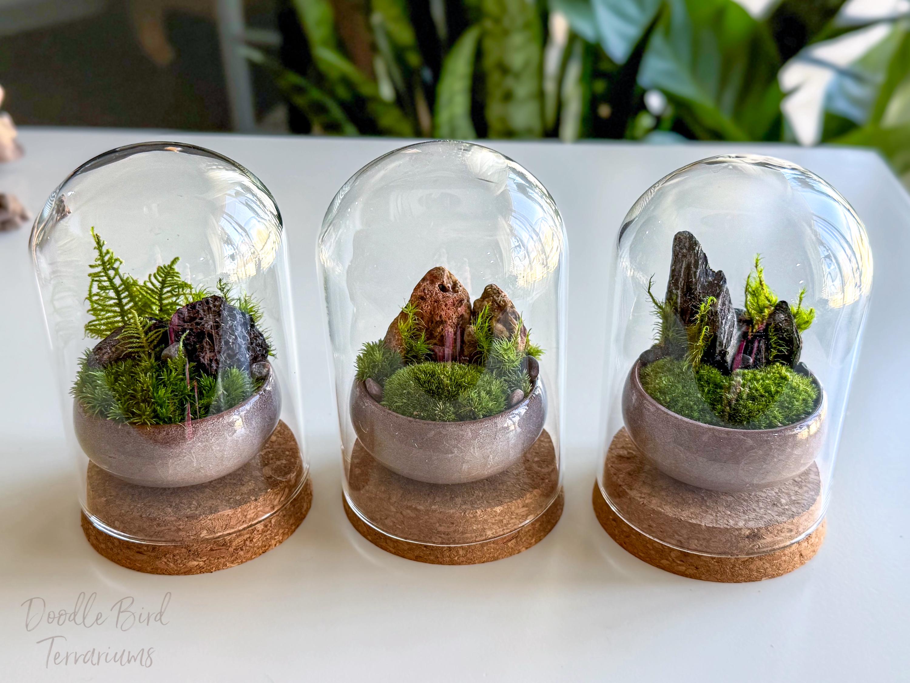 Terrariums are packaged with great care. Packing material is used both inside and outside the jar so that the contents are not jumbled around during shipping. Any terrarium containing live plants should be unpacked immediately after arrival. Plants cannot survive long periods of time inside the box or with packing material covering them. If you need to keep the terrarium in the box then place it in the refrigerator until needed. This will keep the plant fresh (simulating winter conditions) and green. Remember to remove the packing material prior to storage.