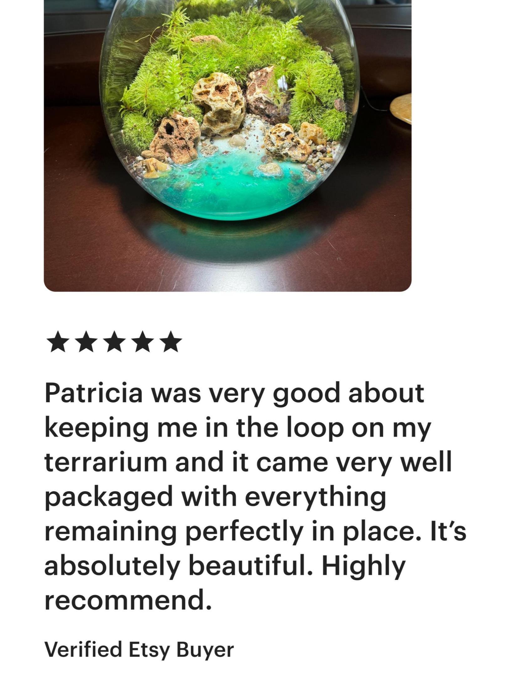 Terrariums are packaged with great care keeping safety in mind. Because of that reason, gift wrapping is not an option. However, a personalized gift card is available upon request and is free of charge.