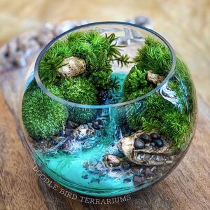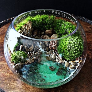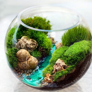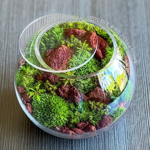 Terrariums are packaged with great care. Packing material is used both inside and outside the jar so that the contents are not jumbled around during shipping. Any terrarium containing live plants should be unpacked immediately after arrival. Plants cannot survive long periods of time inside the box or with packing material covering them. If you need to keep the terrarium in the box then place it in the refrigerator until needed. This will keep the plant fresh (simulating winter conditions) and green. Remember to remove the packing material prior to storage.