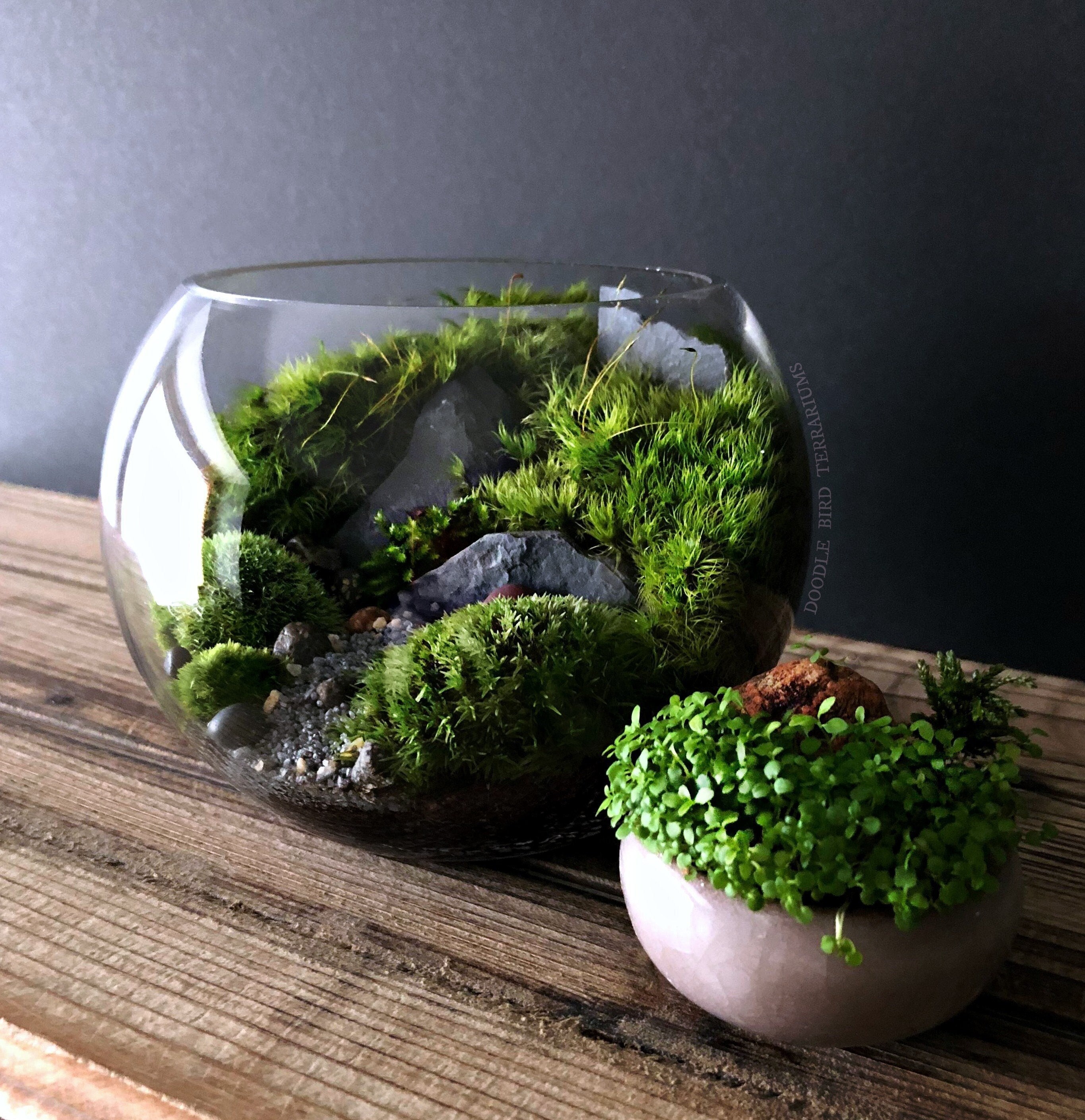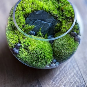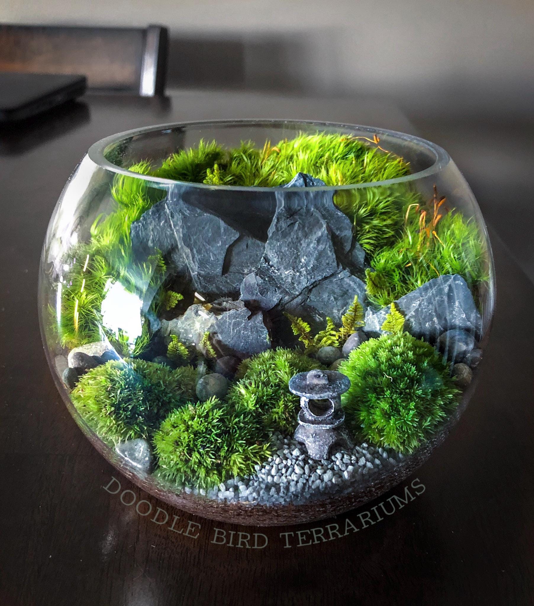 Terrariums are packaged with great care. Packing material is used both inside and outside the jar so that the contents are not jumbled around during shipping. Any terrarium containing live plants should be unpacked immediately after arrival. Plants cannot survive long periods of time inside the box or with packing material covering them. If you need to keep the terrarium in the box then place it in the refrigerator until needed. This will keep the plant fresh (simulating winter conditions) and green. Remember to remove the packing material prior to storage.