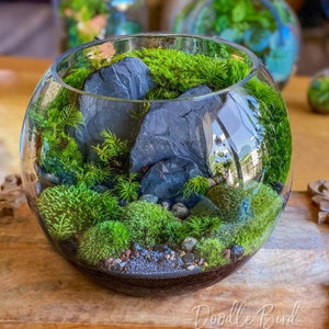 Choose from a large 8" or 10” display bowl, or check our shop for the mini 5" option. Your terrarium comes with easy care instructions to ensure your moss thrives, along with a FREE mini spray bottle—just add love and a spritz of distilled water every few weeks.